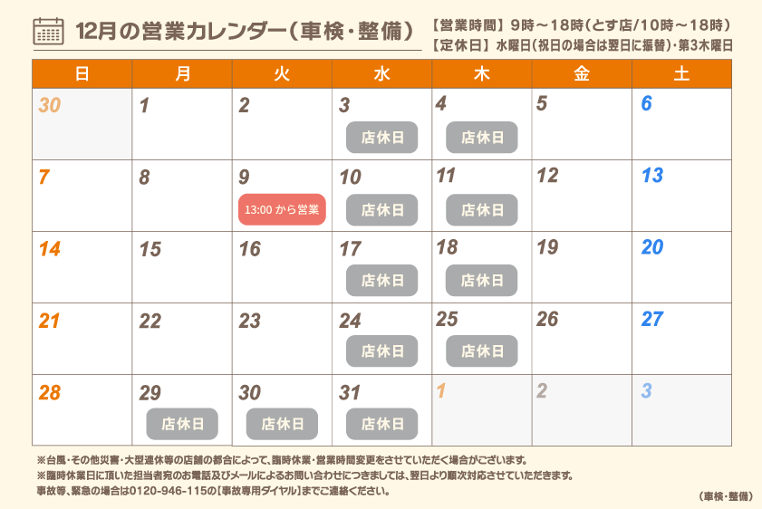 ※HPに記載している割引・特典は、お電話や予約フォームからご予約を頂いたお客様にのみ適用させて頂きます。【年末年始のお問い合わせについて】2025年12月29日〜2026年1月4日の期間について、以下の通りご案内いたします。・お電話でのお問い合わせ:この期間はつながりません。・メールでのお問い合わせ:期間中にいただいたメールは、2026年1月5日以降に順次お返事いたします。お返事にお時間がかかる場合がありますので、お急ぎの方は1月5日以降にお電話にてお問い合わせくださいませ。・車検、整備:この期間は行なっておりません。