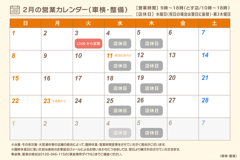 車検の予約・問合せ(通話無料)